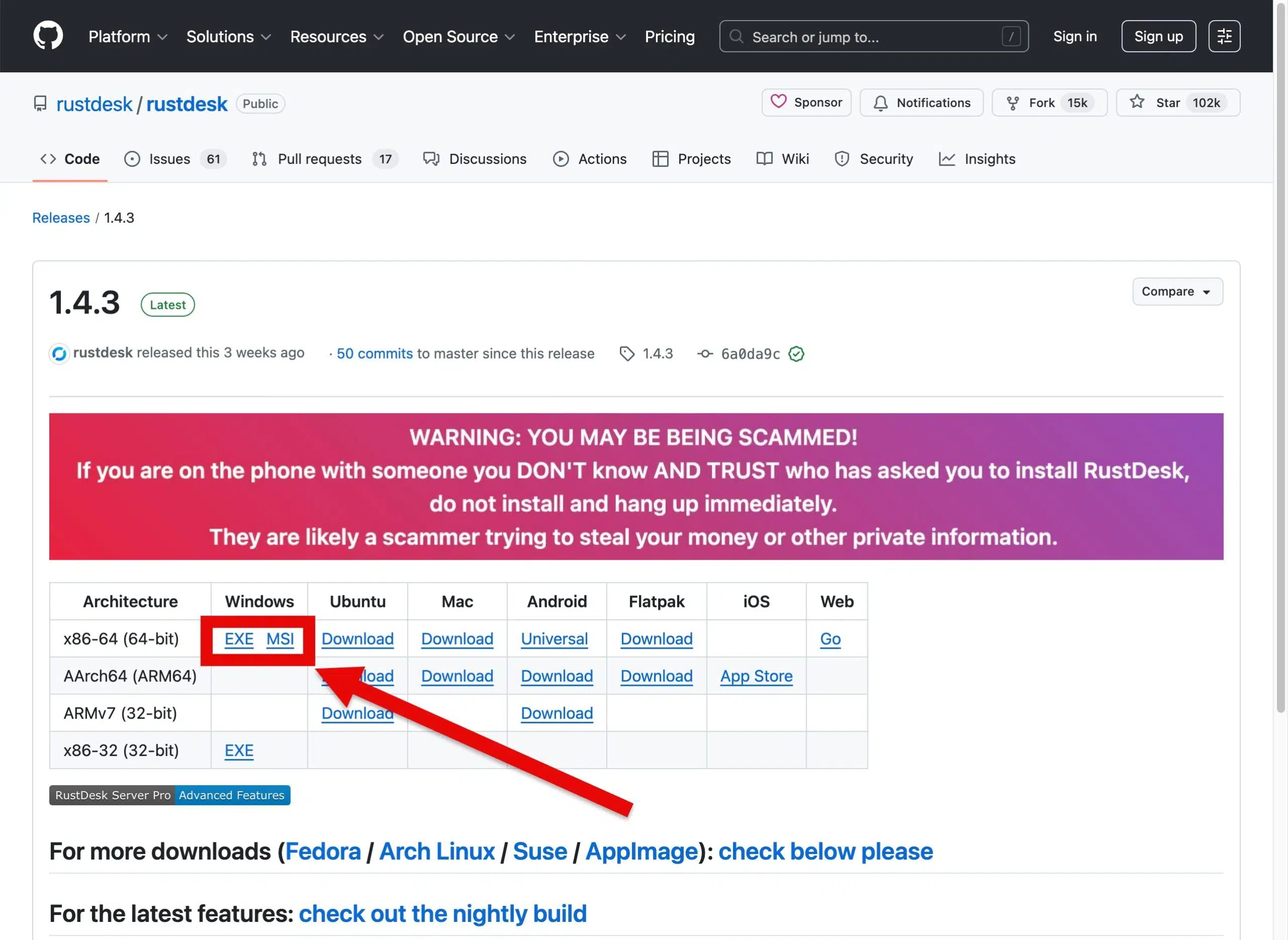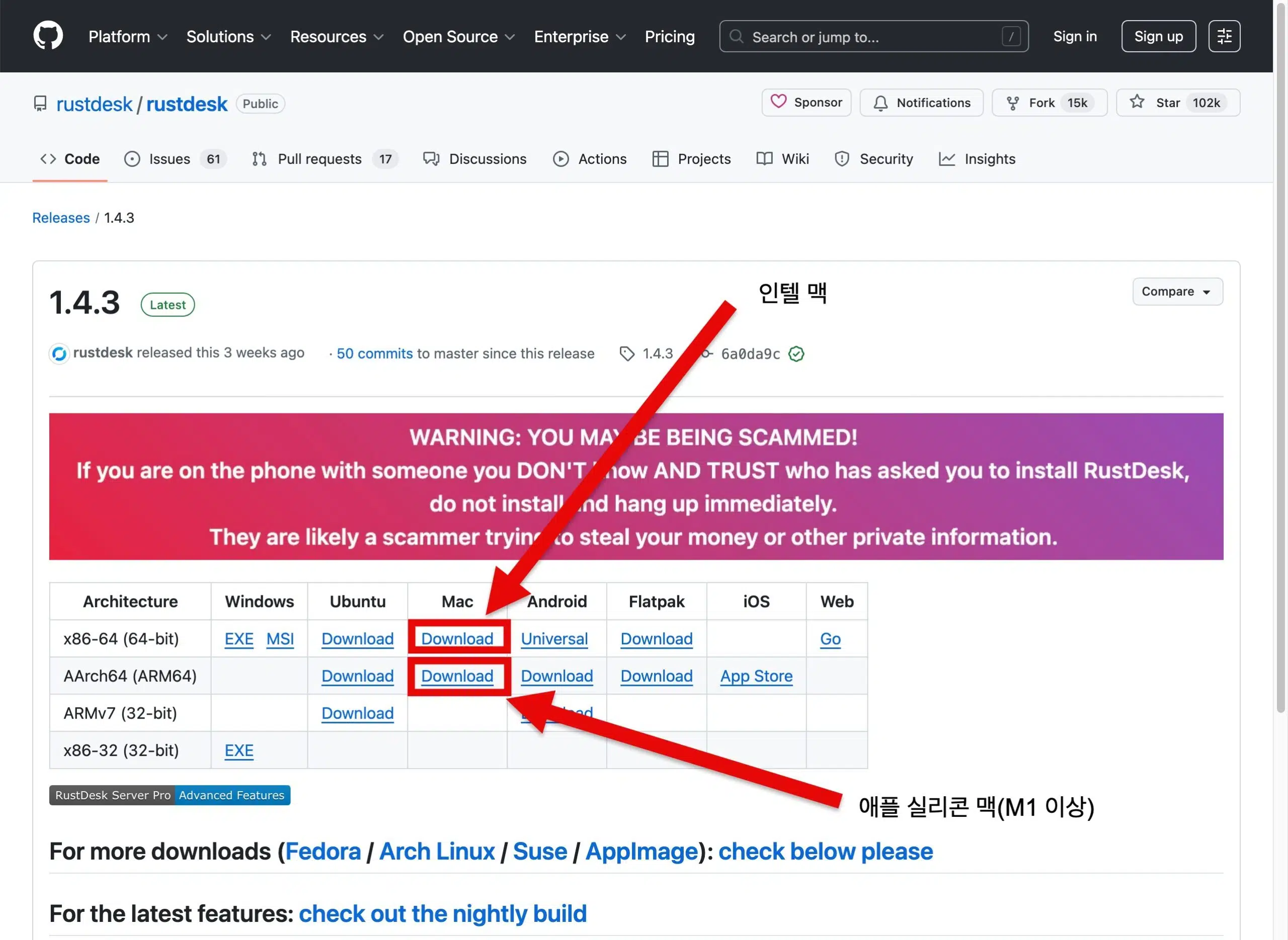 - 애플실리콘 맥(M1 이상)이라면 AArch64 (ARM64)를 클릭해서
