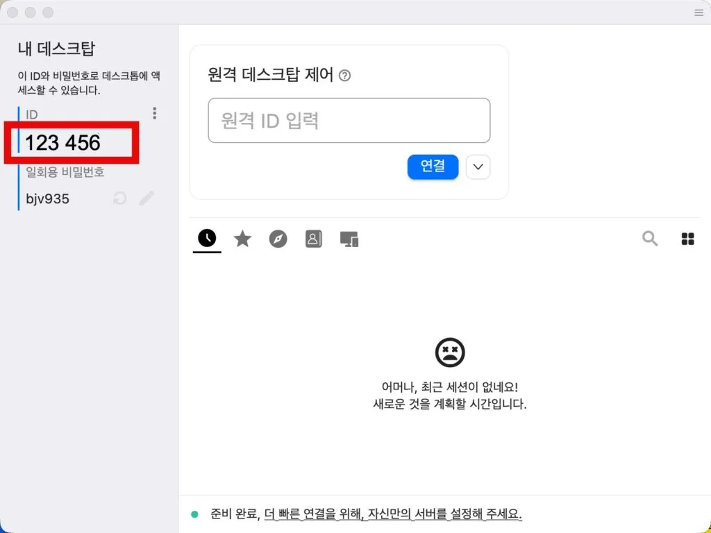 이제 설치가 완료되었습니다. 다음과 같은 화면이 나오면, ID를 알려주시면 됩니다.